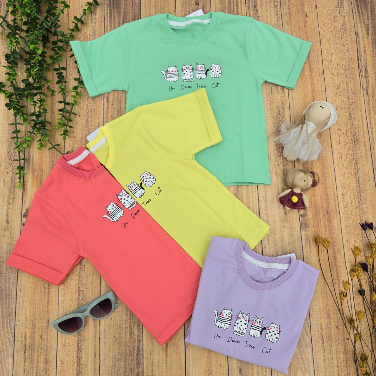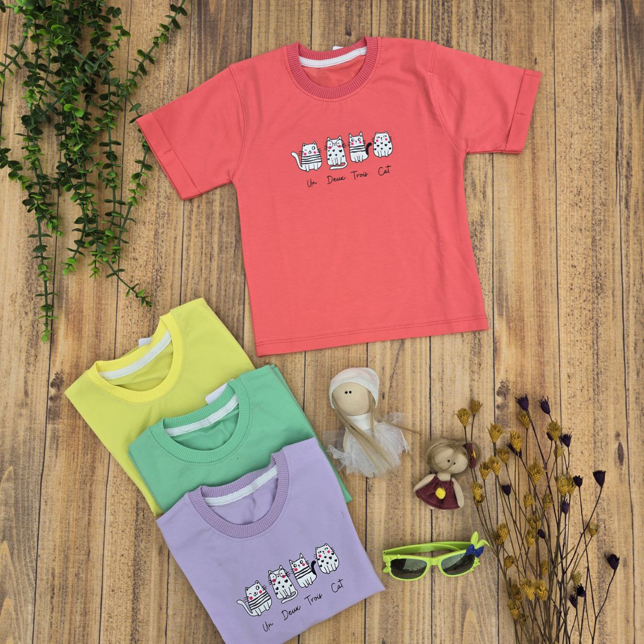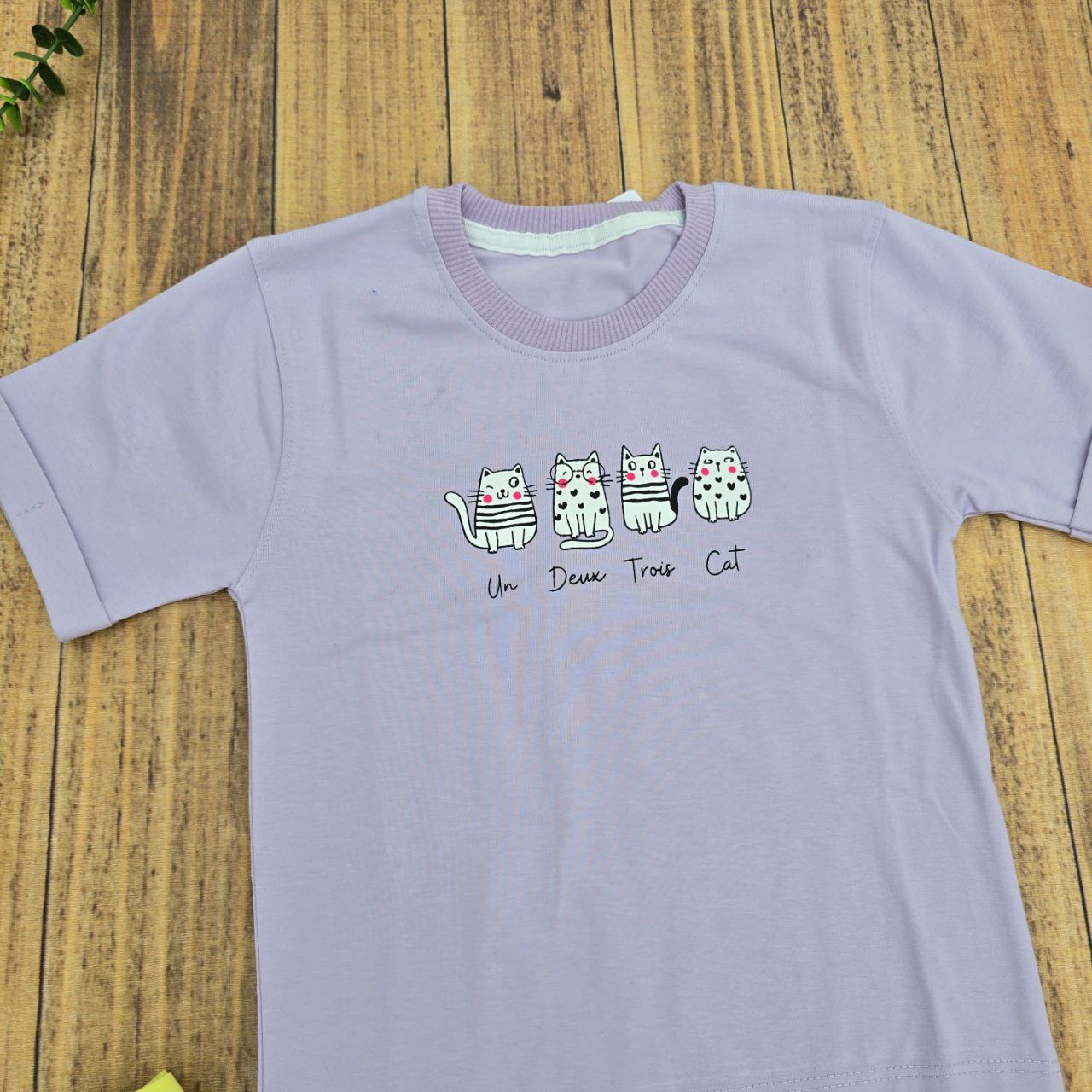 تیشرت چاپ گربه جنس نخ پنبه درجه یک خنک و بدون آبرفت