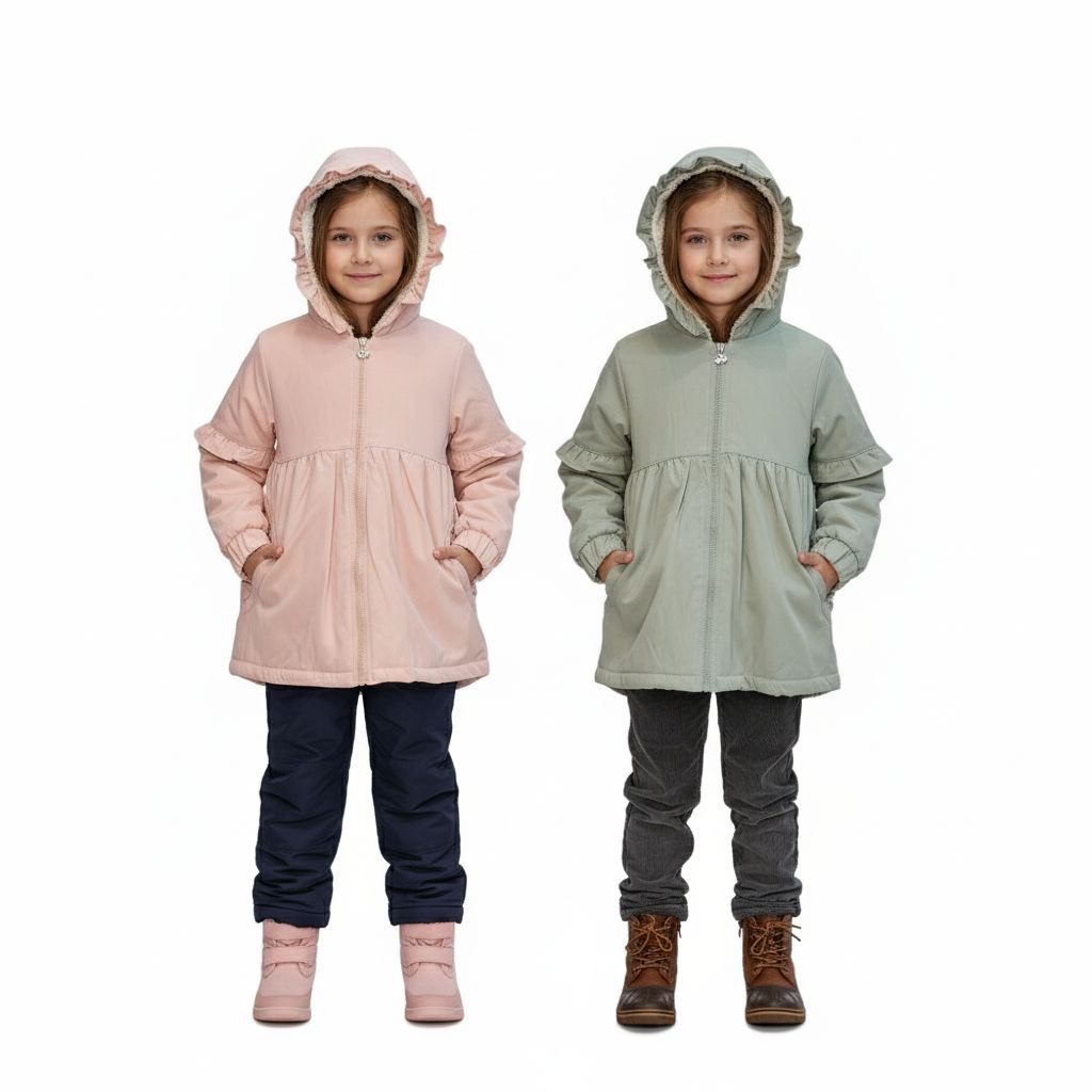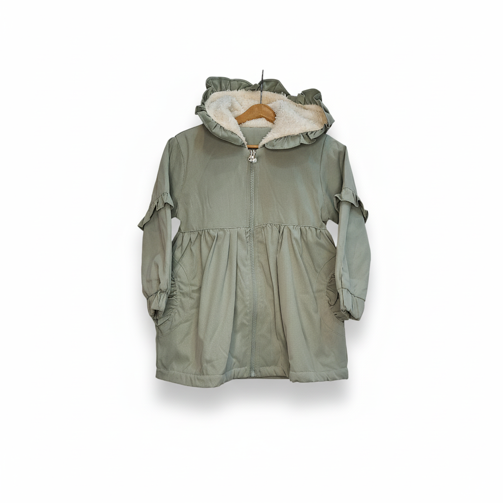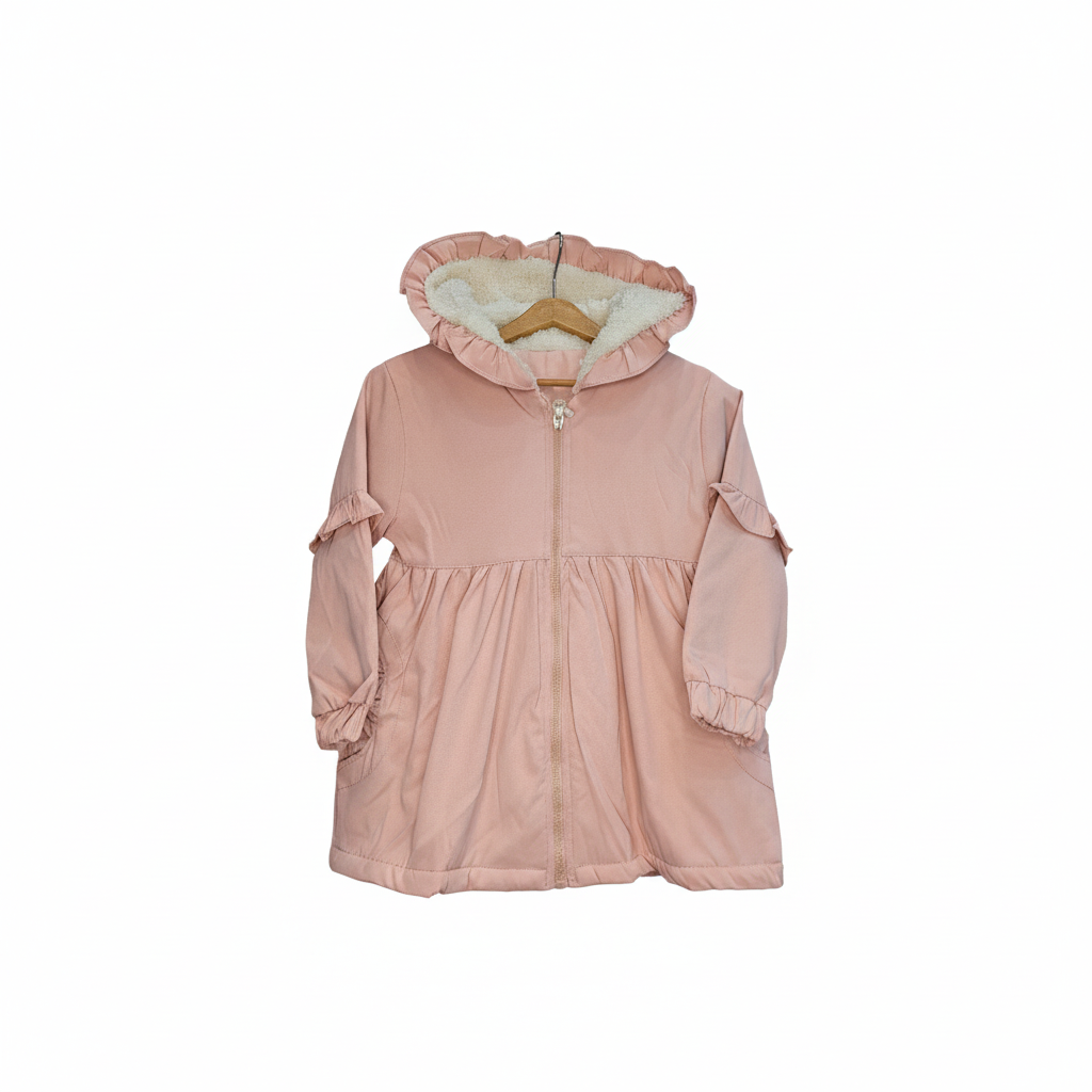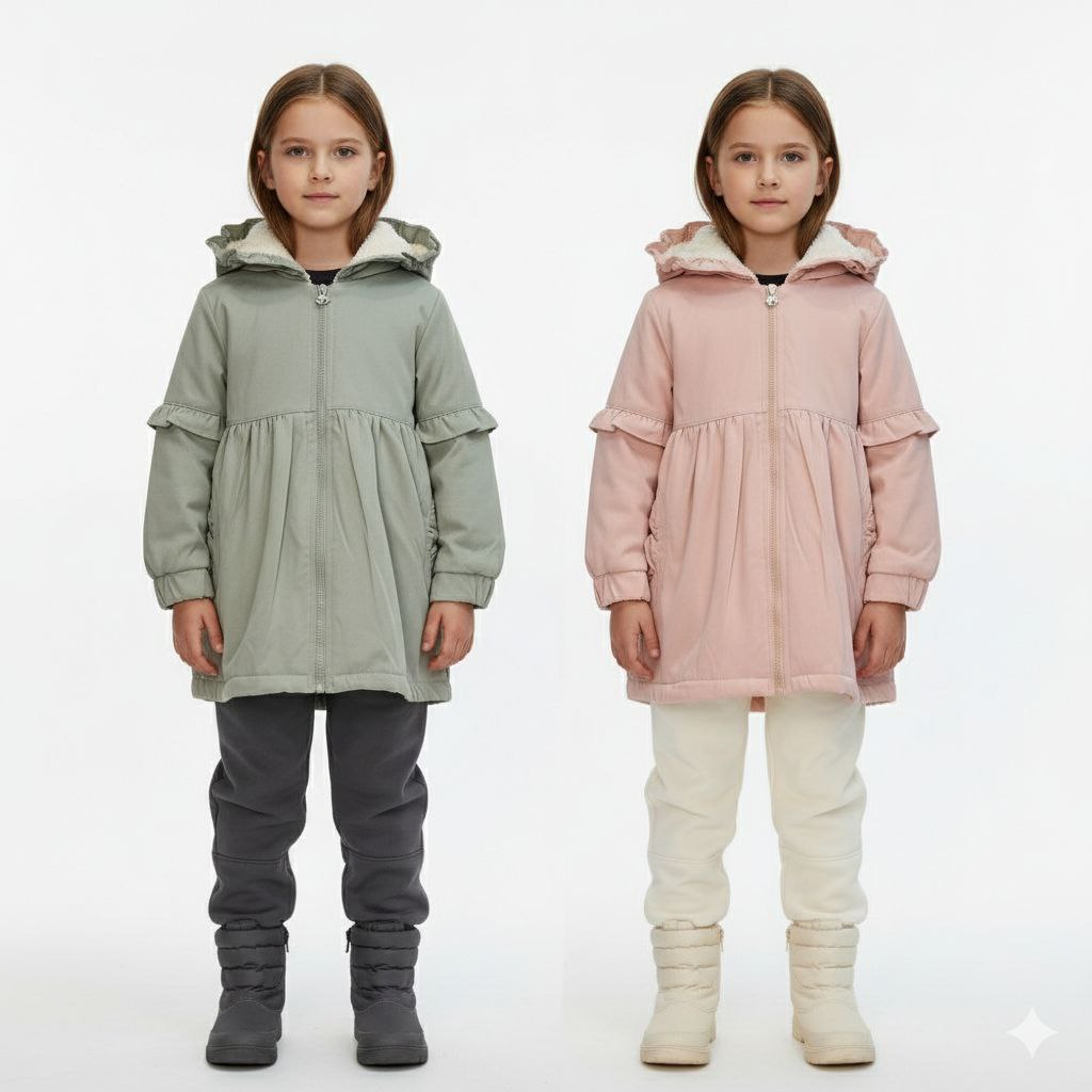 سویشرت/ کاپشن بلند دخترانه دو تا نه سال جنس رویه کتان داخل خز کلاهدار